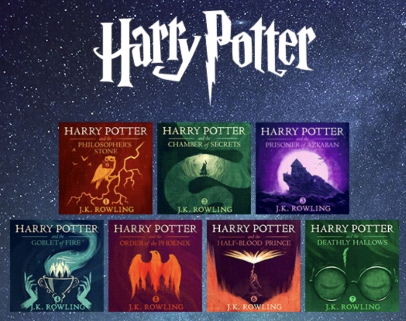 The Harry Potter series. The original Harry Potter series is brought to life by the voice of master storyteller Stephen Fry in these complete and unabridged audio editions. It follows Harry Potter a wizard in his fourth year at Hogwarts School of Witchcraft and Wizardry and the mystery surrounding the entry of Harrys name.